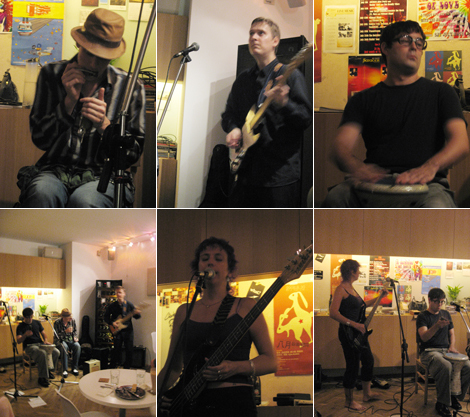 以上就是本週六為我們帶來演唱的團員們。左上的口風琴手長相俊俏,深受同行兩位女孩讚賞;中間的吉他手則讓人感覺俏皮,不時solo又跳又唱的,還協助其他團員進行翻譯,相當可愛;右上擊鼓的男團員,應該算是主唱,聲音好迷人,鼓彷彿有表情似的;最後是穿著夏季的女團員,除了撥絃也有演唱,笑起來很可愛:)。