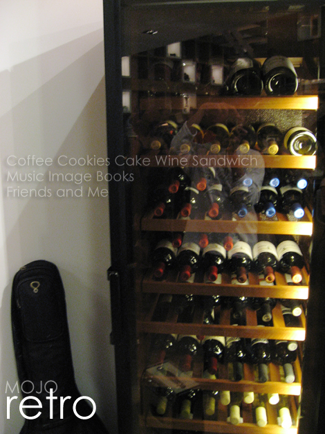 在等候樂團演唱時,幾個人就開始在店內收集風景。retro除了有很著名的多重格櫃背景,連吧檯與DM等相關文宣的放置區也都頗具巧思,譬如服務生會將客人飲盡的酒瓶收集在一起當做廣告,壁上率性懸掛的天空風景,以及來自世界各地寄給店長的明信片們,都讓我有些耽溺在現場的氛圍裡。
